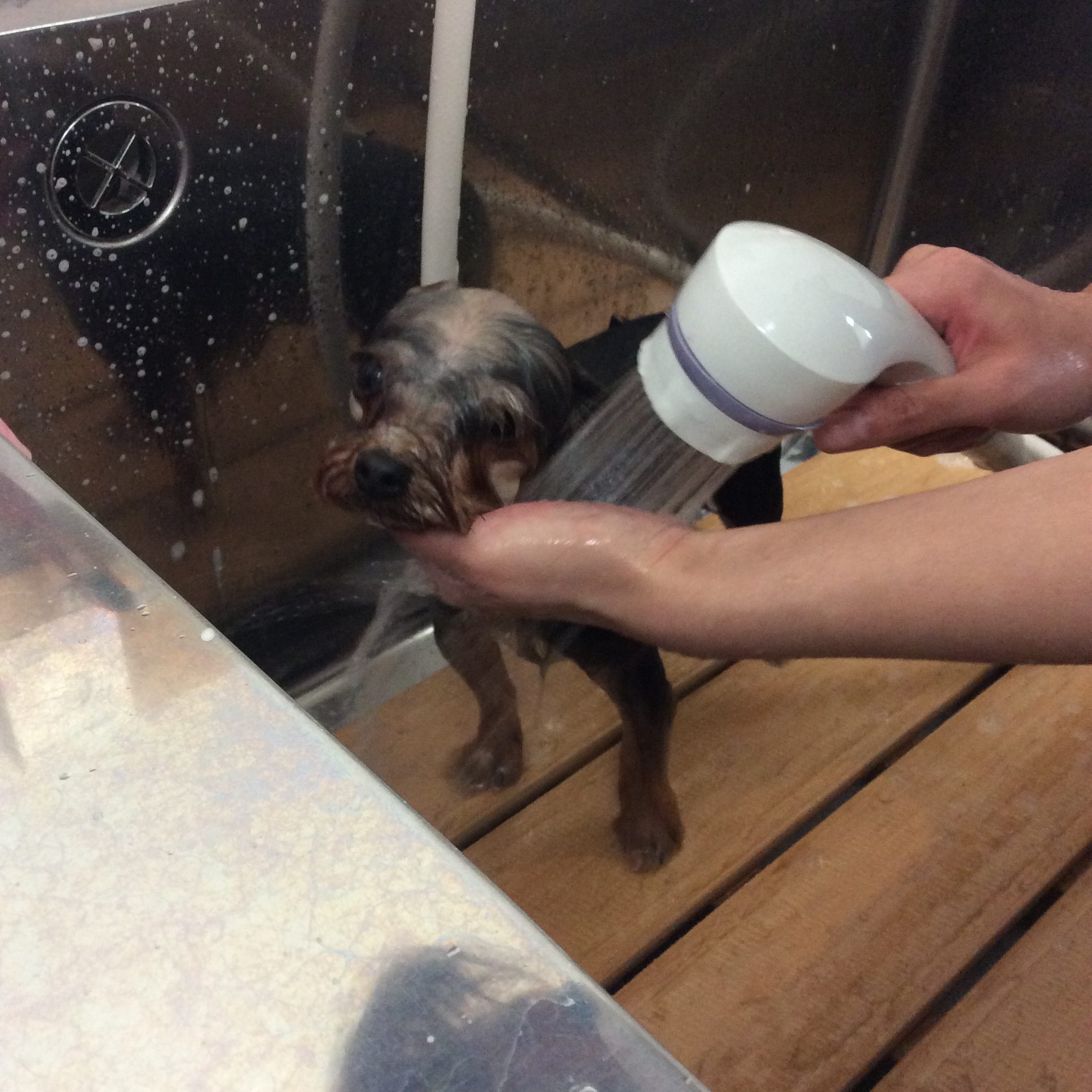 ヨーキーのプリンちゃん トリミング コメントする / トリミング, ヨーキー / By ataso0902@gmail.com ヨーキーの女の子プリンちゃんが トリミングに来て下さいました 口周りに毛玉が少し出来ていたので 優しく取り除いていきます とてもお利口さんなプリンちゃん💓 シャンプー中も落ち着いてくれています ヨーキーならではの綺麗な毛艶復活💓 プリンちゃんありがとうございました