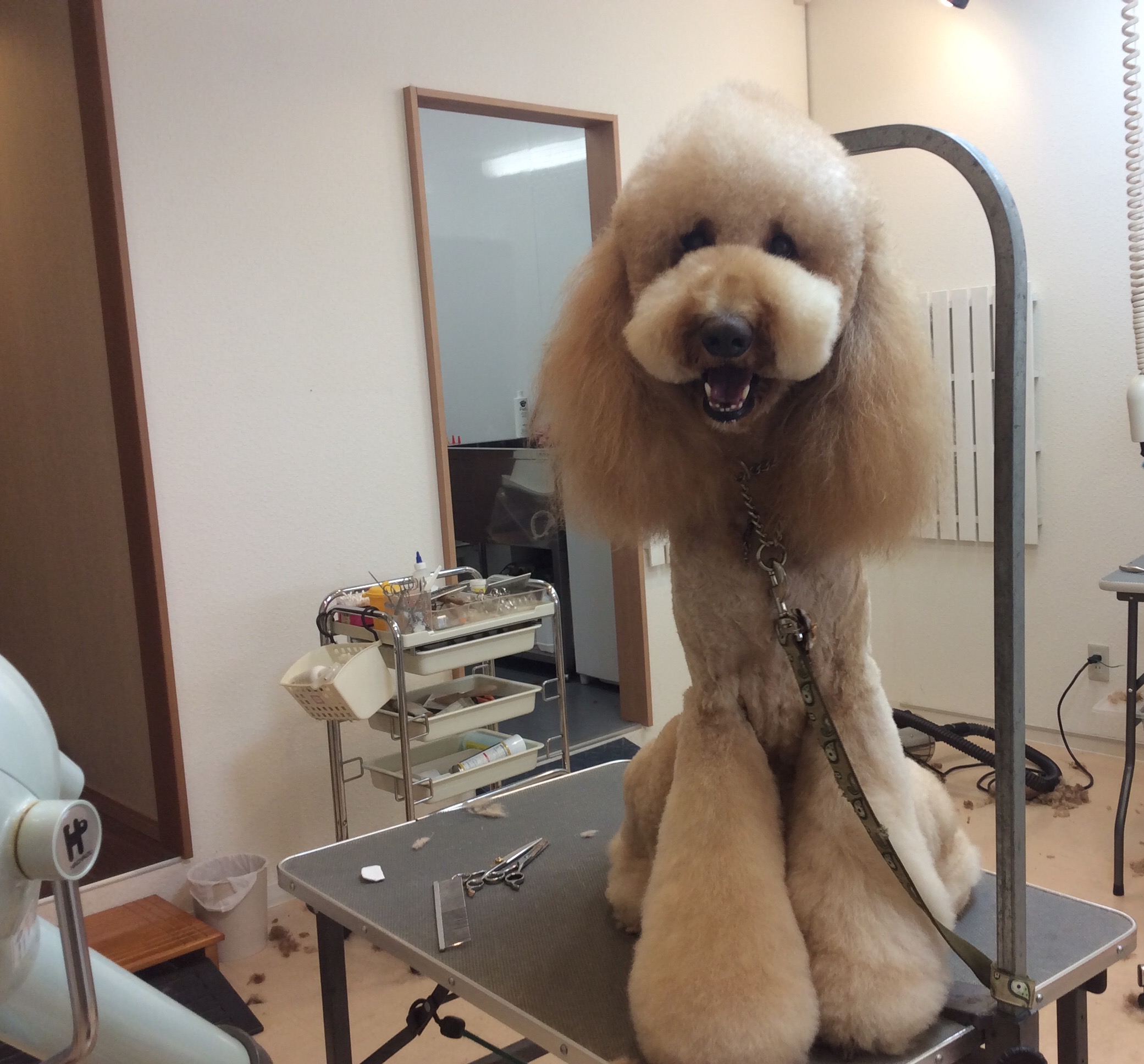 スタンプーの萌瑠ちゃん カット コメントする / トリミング / By ataso0902@gmail.com スタンダードプードルの萌瑠(める)ちゃん ママとパパに抱きついて別れを惜しんでましたが お店に入れば切り替えは早いです(*^o^*) 最近ブーツカットにチェンジして少しトリミングの時間が延びましたが それでもいい子で頑張ってくれています✨ 今日はお顔も今までと少し変更しました♩ ありがとうございました(*^o^*)