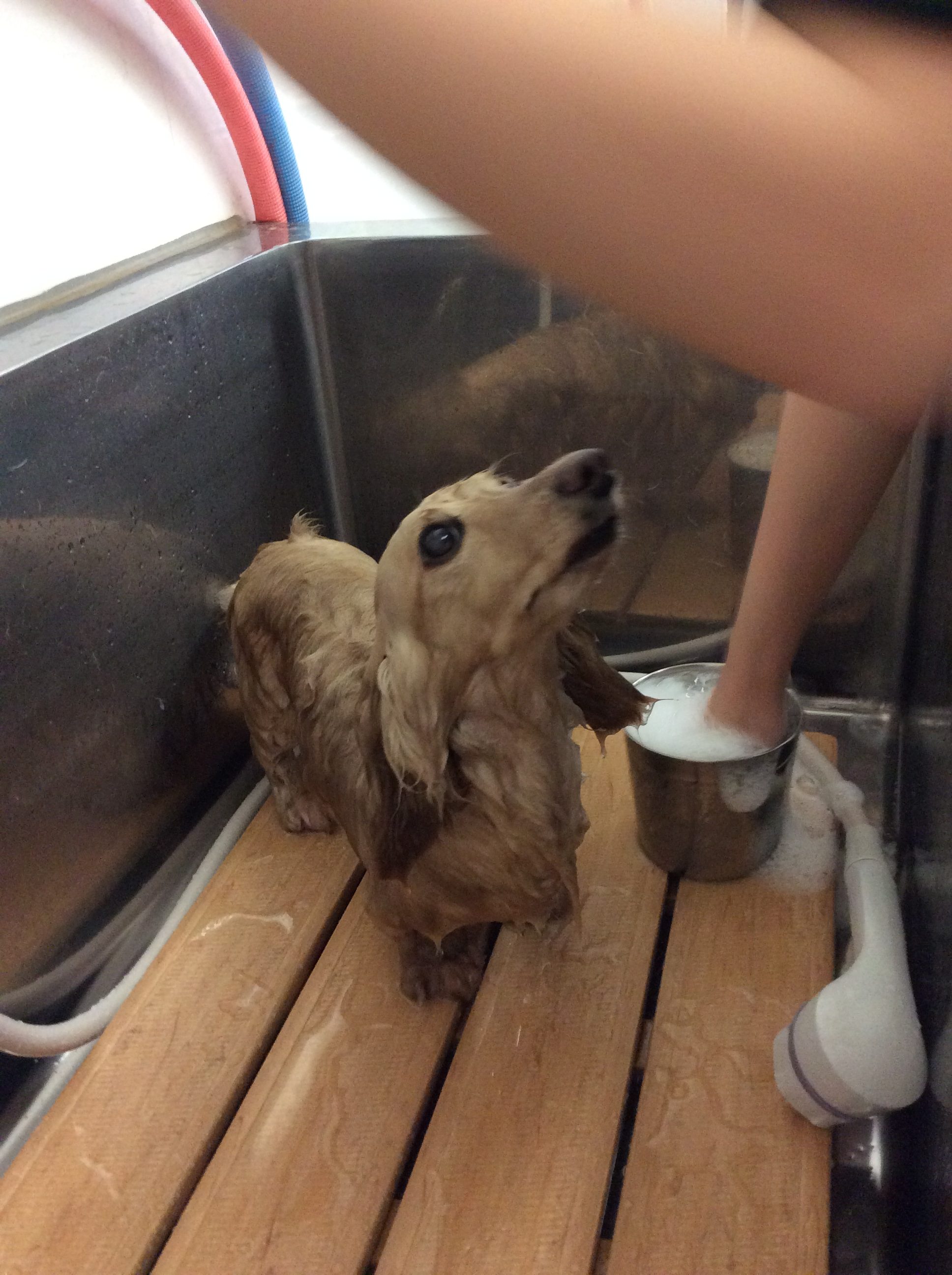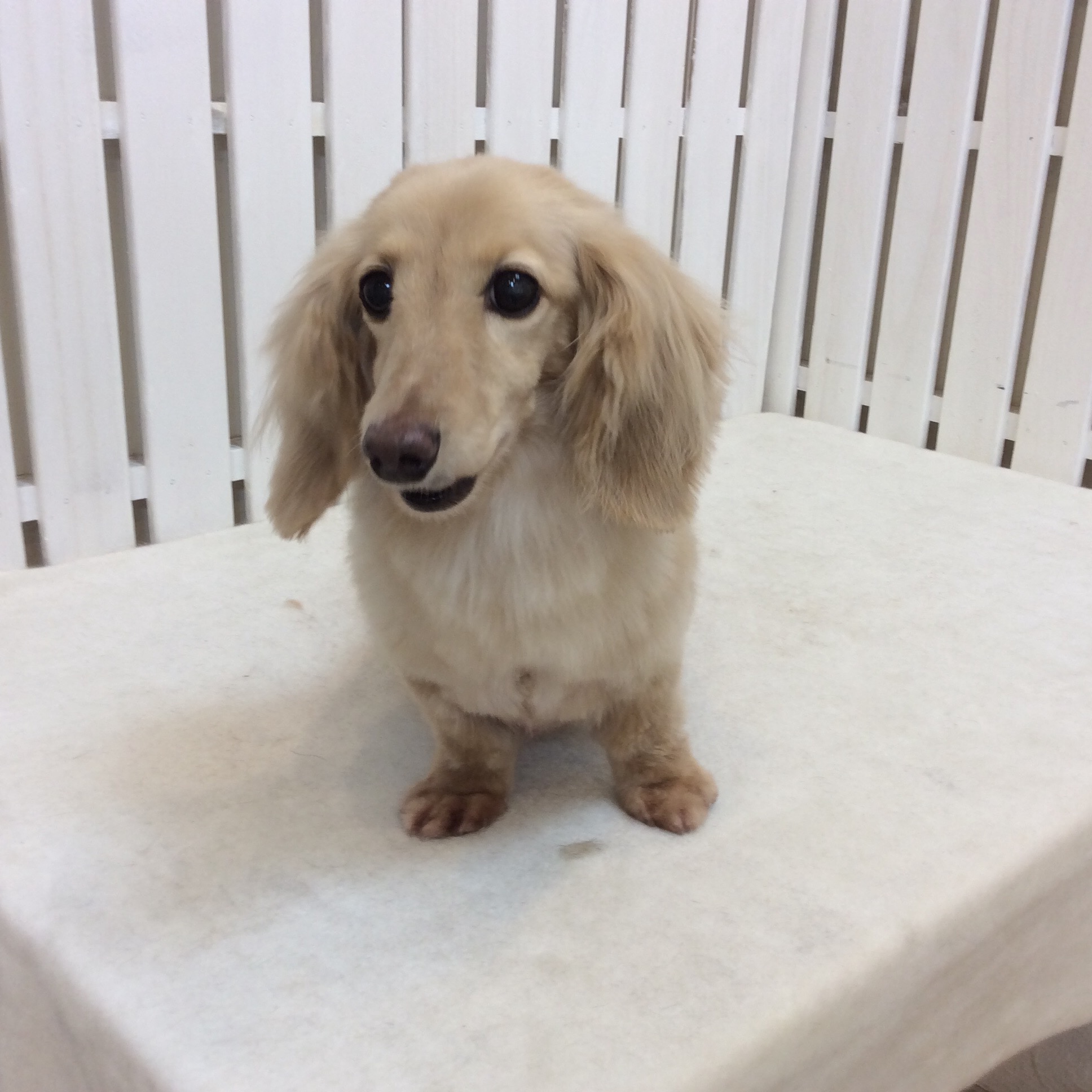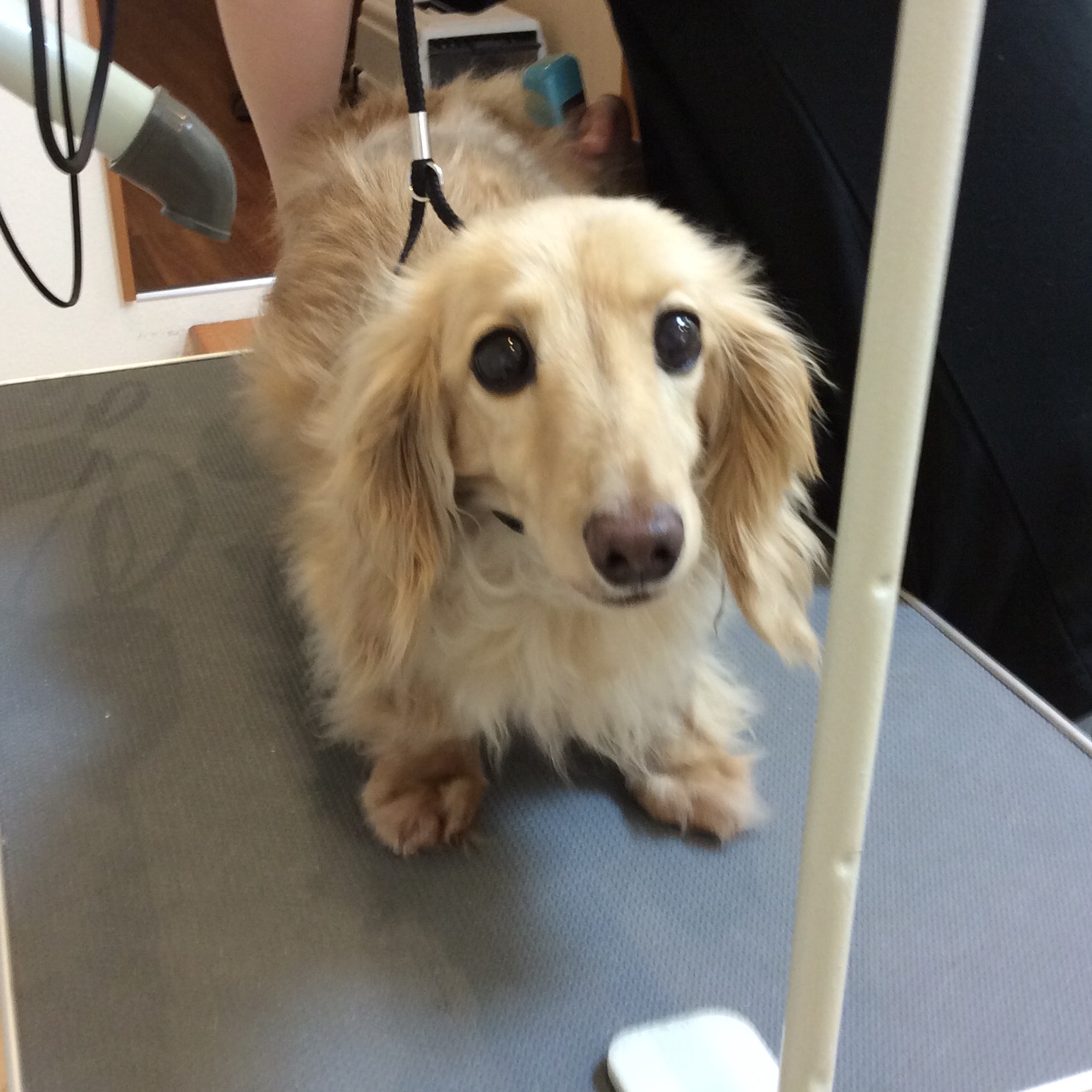 ダックスのひなたちゃん カット コメントする / ダックス, トリミング / By ataso0902@gmail.com ダックスのひなたちゃん 緊張してソファーの下に隠れちゃったけど、今日も頑張ろうね>_< トリマーの事をジッと見つめながら良い子にシャンプーされています❤️ こんなに見つめられたらメロメロです(*^o^*) 少しカットするだけでも、スッキリとした印象に♩ ありがとうございました!
