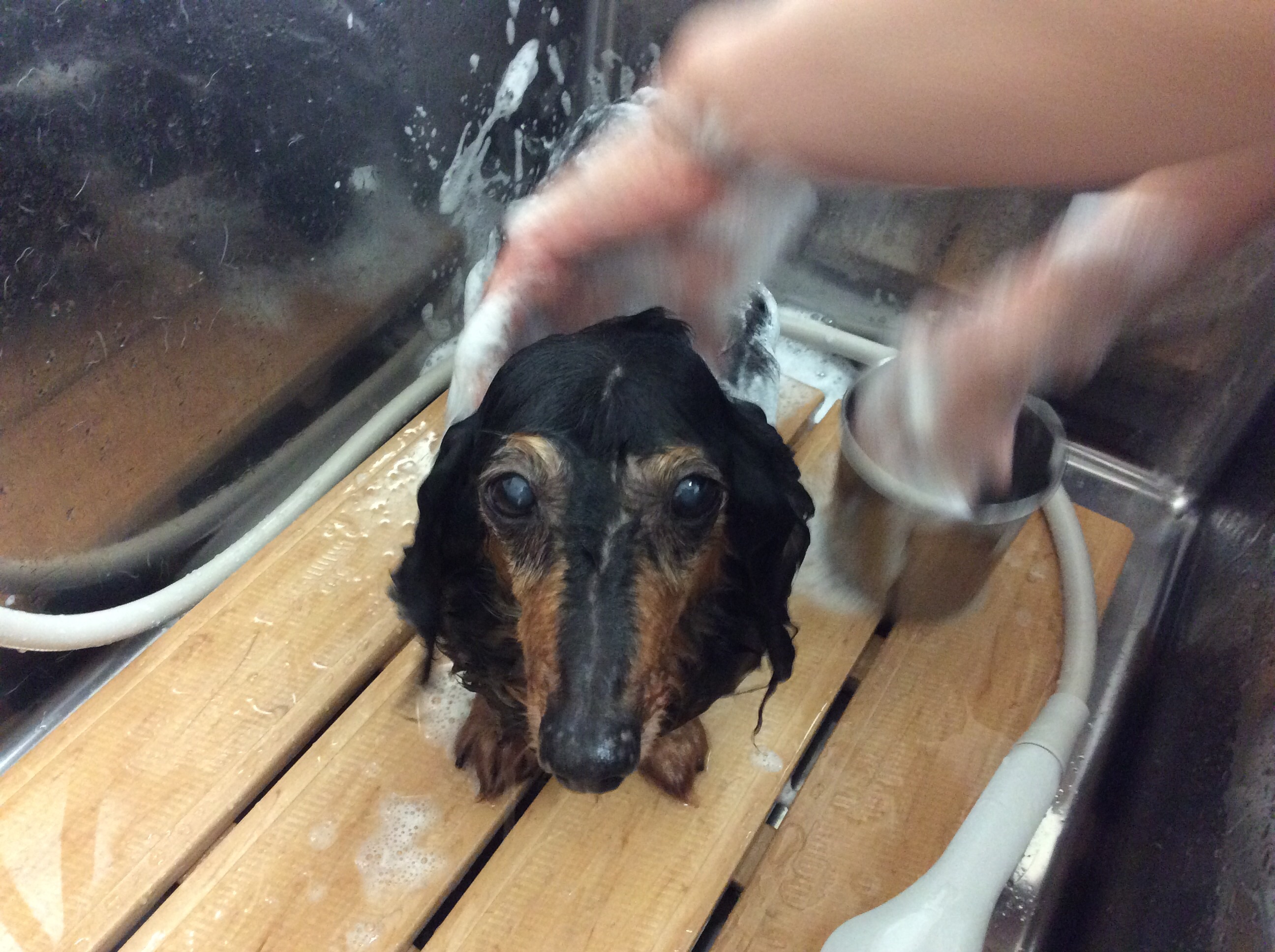 ダックスのマイロちゃん トリミング コメントする / ダックス, トリミング / By ataso0902@gmail.com ダックスのマイロちゃんがトリミングに来てくれました❤️ お手入れもとってもお利口さんに頑張ってましたo(^▽^)o シャンプー中も微動だにしないマイロちゃん アワアワで気持ち良さそうだね❤️ すっきり短くカットして幼い印象になりました✨ マイロちゃんお疲れ様でしたo(^▽^)o