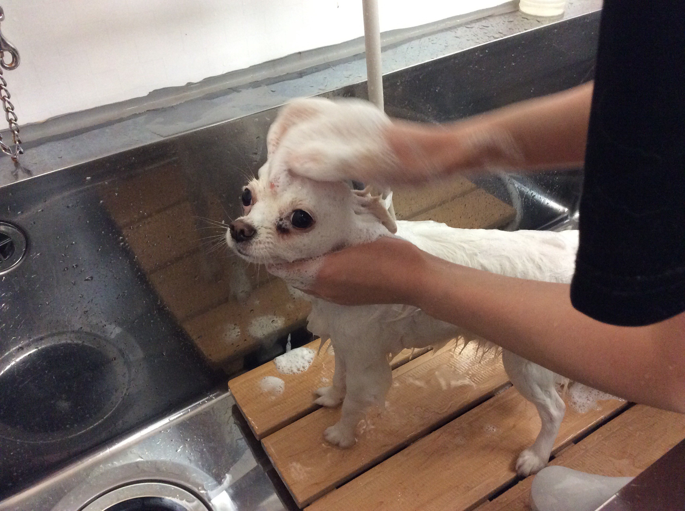 チワワのルナちゃん トリミング コメントする / チワワ, トリミング / By ataso0902@gmail.com チワワのルナちゃんが初めてお店に来てくれました☆ すごくおとなしいルナちゃん、来た時は少し緊張して固まっていましたが お爪切りもお利口さんにこなしていきます❤️ シャンプー中も微動だにしません( ^ω^ ) やっぱり知らない場所は緊張してしまうようです☆ カット中もとてもお利口さんでお写真もバッチリ撮れました❤️ マフラーが似合ってます♪ ルナちゃんお疲れ様でした〜p(^_^)q