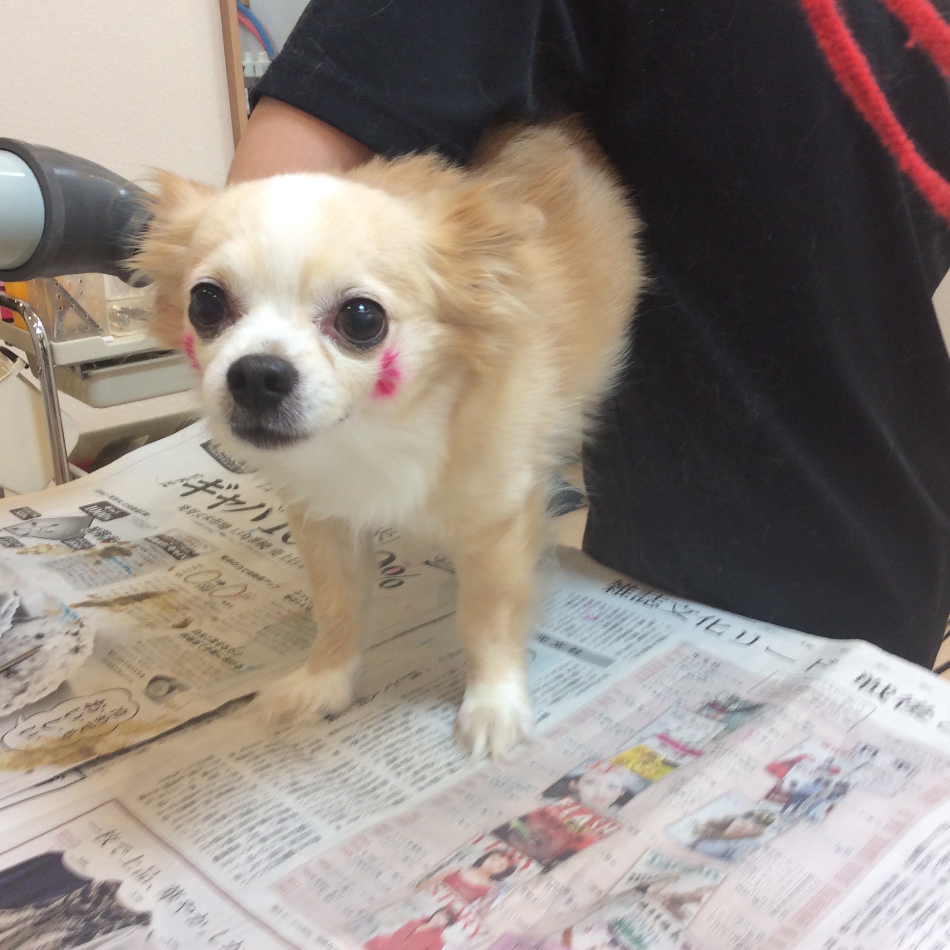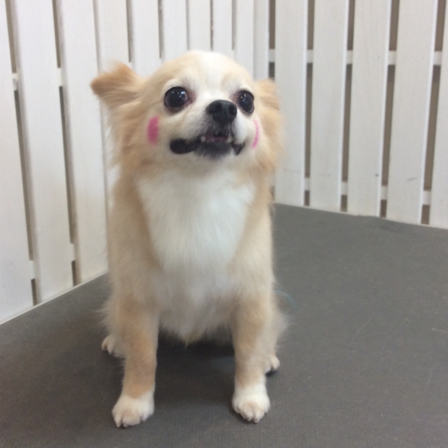 チワワブランちゃん シャンプー&カラーリング コメントする / カラーリング, シャンプー, チワワ / By ataso0902@gmail.com ミニチュアダックスのミルクちゃんと一緒に来てくれた チワワのブランちゃん ブランちゃんといえば、ピンクの頬っぺたという事で 今日はシャンプーと一緒に尻尾のメッシュと頬っぺたを カラーリングしました 尻尾の画像も撮ろう思ったのですが いつでもご機嫌で尻尾をビュンビュン振っているので うまく撮れませんでした>_< ブランちゃん、ありがとうございました❤️