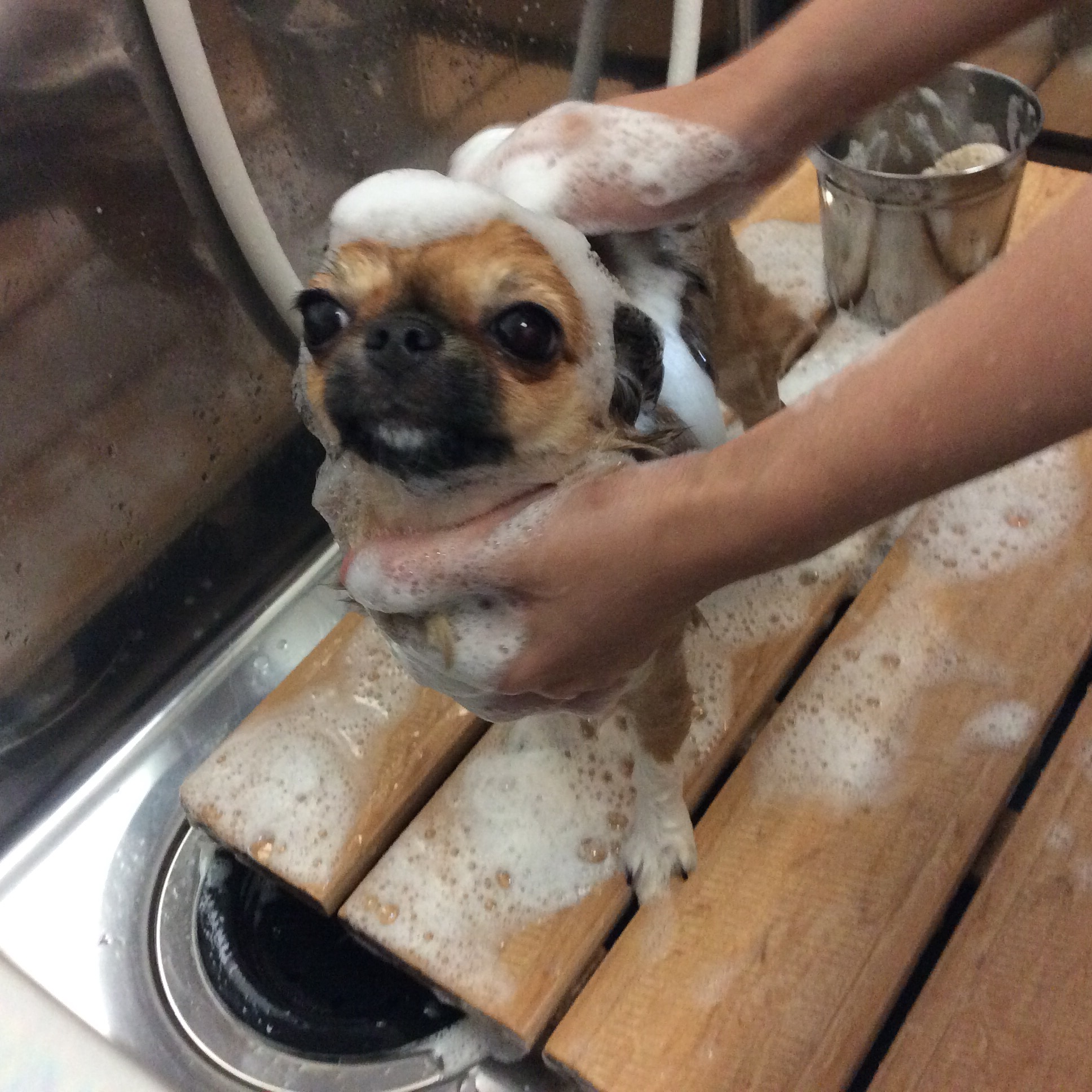 チワワ きなこちゃん シャンプー コメントする / シャンプー, チワワ / By ataso0902@gmail.com チワワのきなこちゃん 最初にお店に来てくれた時は まだまだ仔犬ちゃんで ほとんどの施術をトリマーが抱っこして行っていましたが サロンにも慣れてくれて 身体も少し大きくなって シャンプーもお手入れも余裕の表情✨ きなこちゃん、ありがとうございました(^o^)