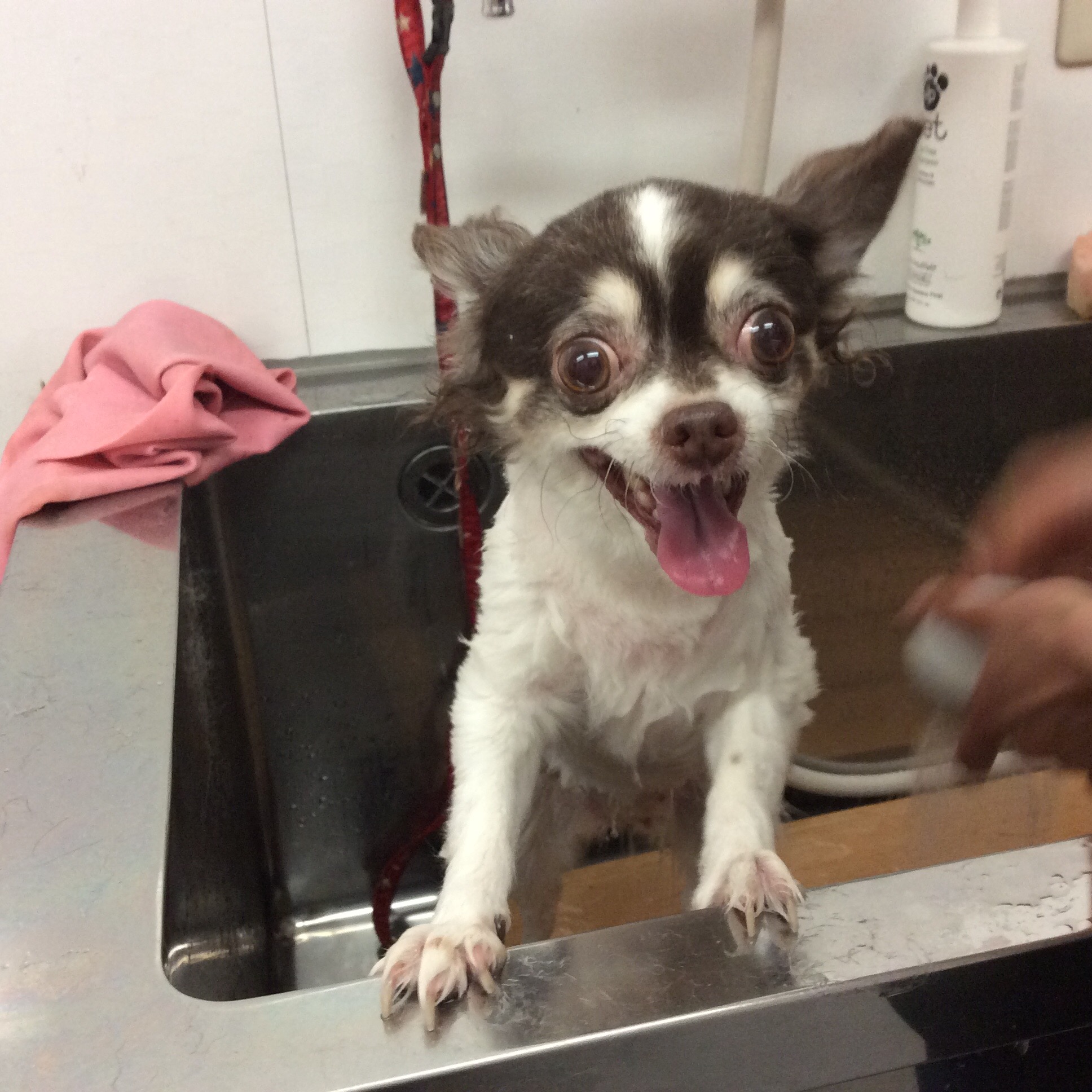 チワワ ここなちゃん トリミング コメントする / チワワ, トリミング / By ataso0902@gmail.com チワワのここなちゃんです 今日はカットコースでご来店です💓 身体の小さいチワワちゃんにとって、全面キラキラのステンレスのシンクって ちょっとビックリしちゃいますよね ここなちゃんも、ちょっと緊張中(T . T) でも、頑張ってくれました💓 ここなちゃん、ありがとうございました