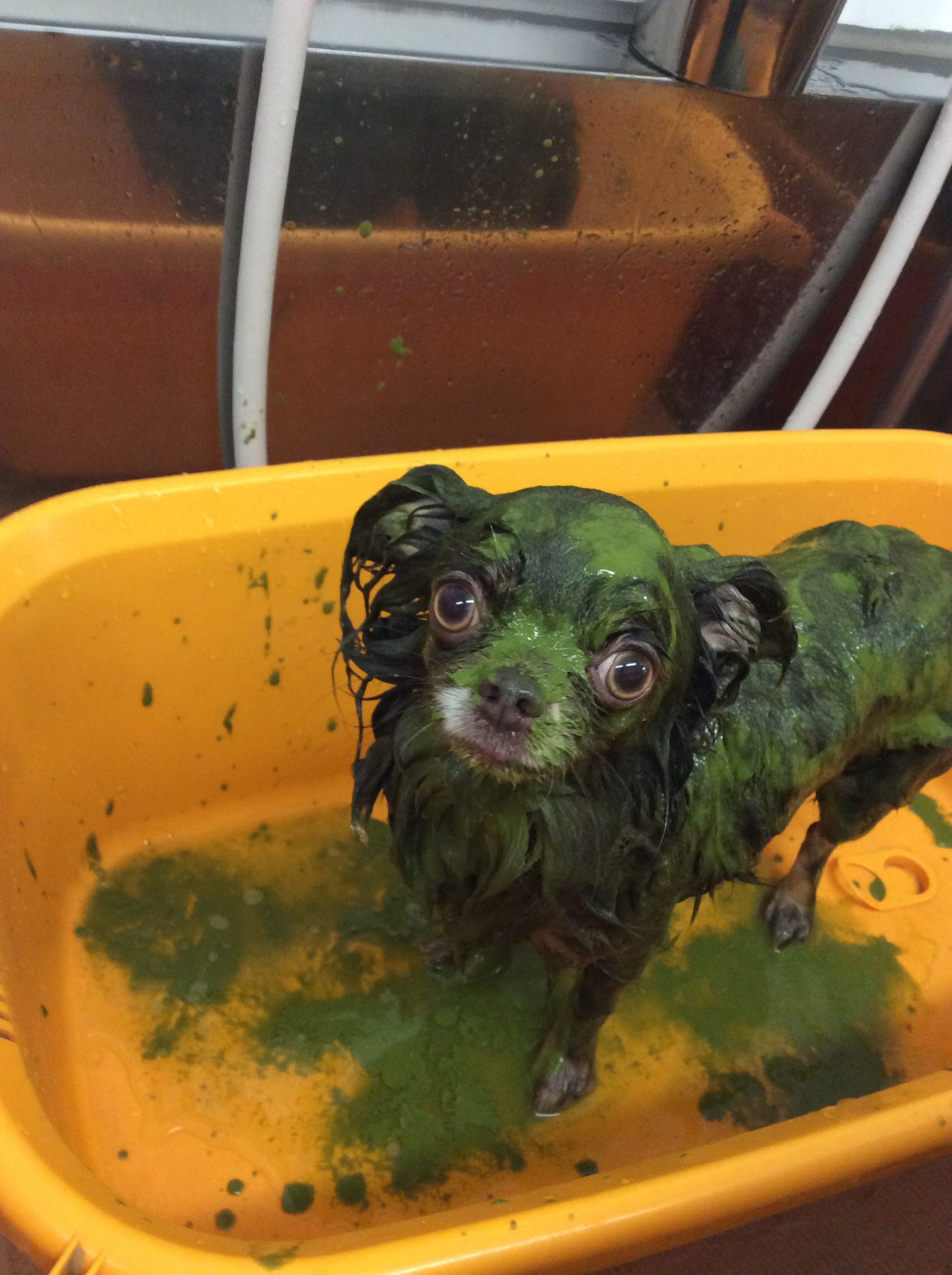 チワワ ちょこまろ子ちゃん シャンプー ハーブパック コメントする / シャンプー, チワワ, トリミング, ハーブパック / By ataso0902@gmail.com きなこもちちゃんと同じお家のちょこまろ子ちゃんです♩ ちょこちゃんもとってもお利口さんでハーブパック中🌿 カメラ目線まで頂いちゃいました💓 とても懐っこいちょこまろ子ちゃん、嬉しさで尻尾がブレちゃいます(*≧∀≦*) ありがとうございました!