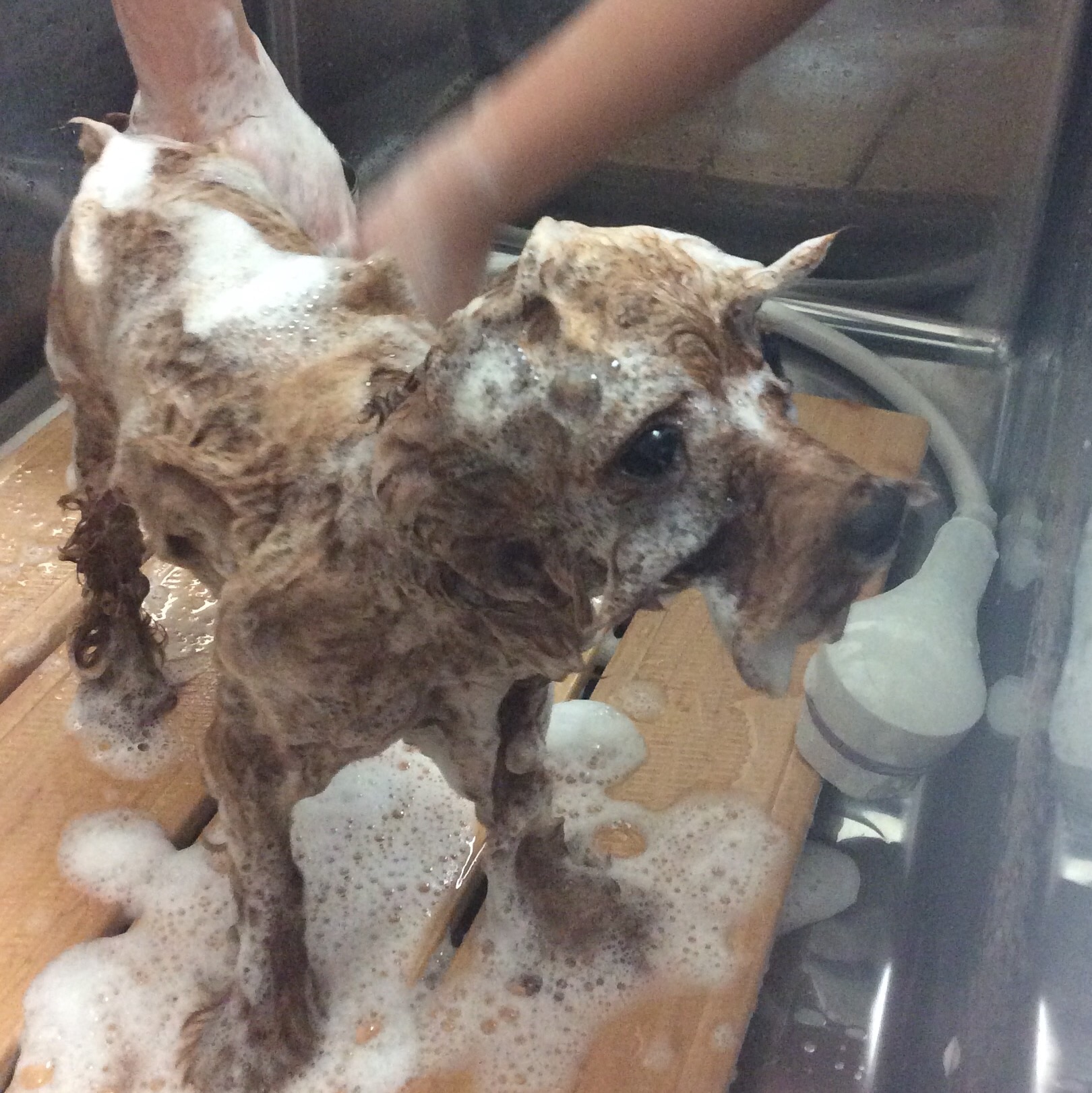 ブログを見ると、シャンプー中はちょっと困っているような顔に見えますが(^o^)