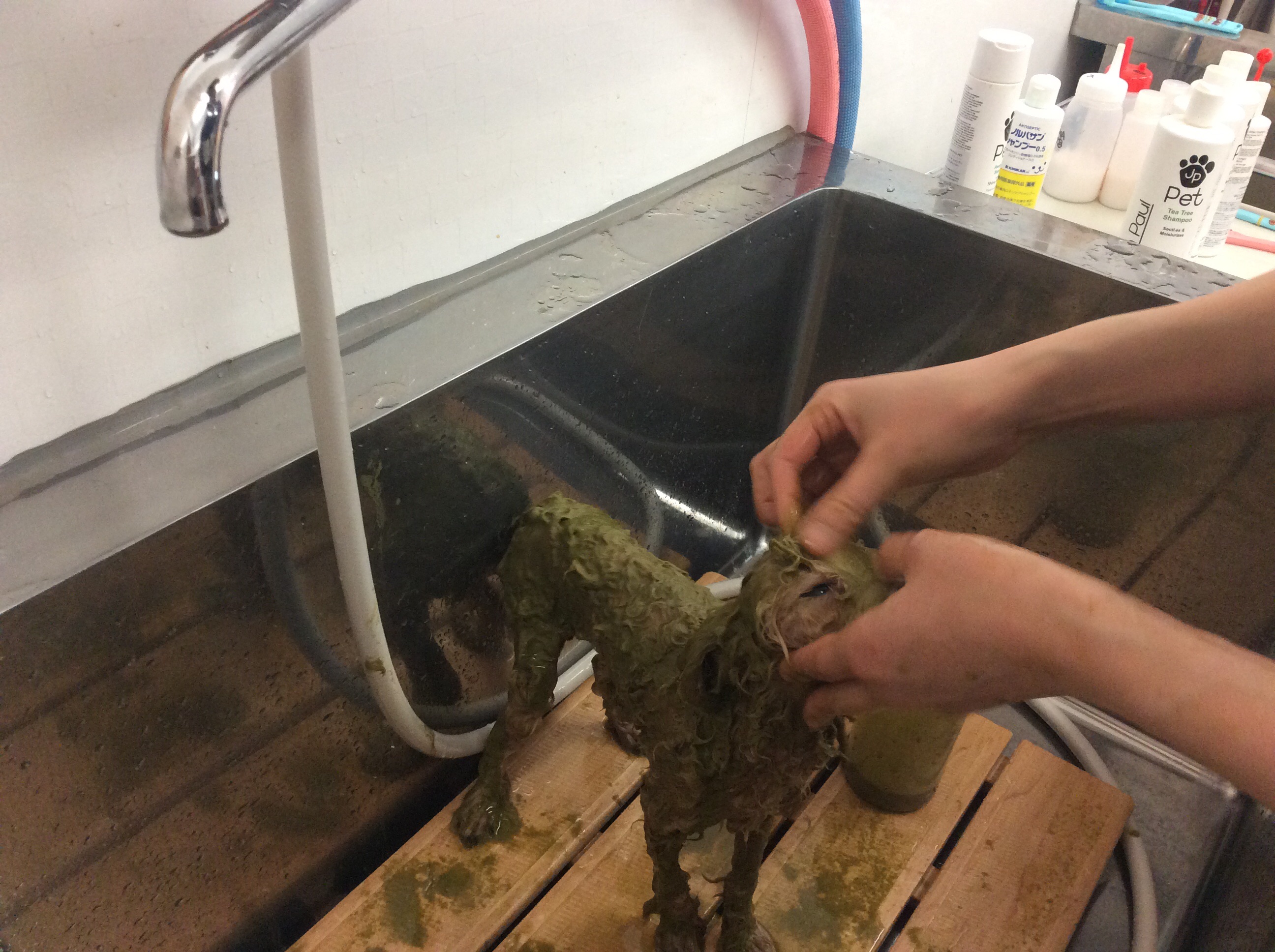 トイプードルのプーちゃん カット ハーブパック コメントする / トイプードル, トリミング, ハーブパック / By ataso0902@gmail.com トイプードルのプーちゃんのトリミングです(^o^) ママ達が近くで見ていても、全く動じないプーちゃん 本当にお利口さんなんだね♩ 今日もハーブパック付きのスペシャルコースです✨ ハーブパックもとても良い子にできたのですが… お湯に浸かるのはまだちょっと怖いのか トリマーの腕にしっかりとしがみ付いていました(゚o゚;; 少しづつ慣れていこうね♩ ありがとうございました!