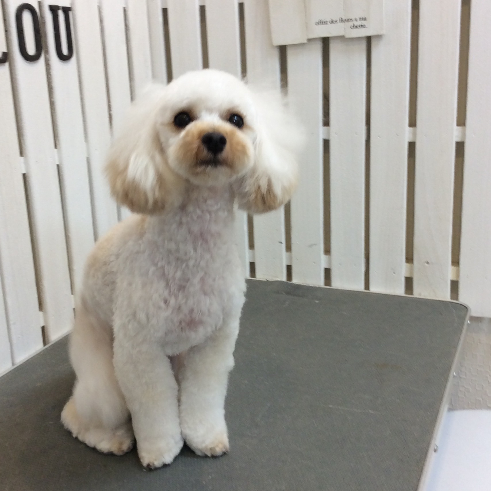トイプードル こつぶちゃん トリミング コメントする / トイプードル, トリミング / By ataso0902@gmail.com トイプードルのこつぶちゃん 今回はちょっとだけカットチェンジに挑戦する事になりました 前回のカットはこちら テディベアカットで少し幼い雰囲気です そしてカットチェンジした今回 小顔になったので、その分お耳のボリュームが目立って 女子力アップ風ですが・・・ 男の子です☆*:.。. o(≧▽≦)o .。.:*☆ こつぶちゃん、ありがとうございました(^o^)
