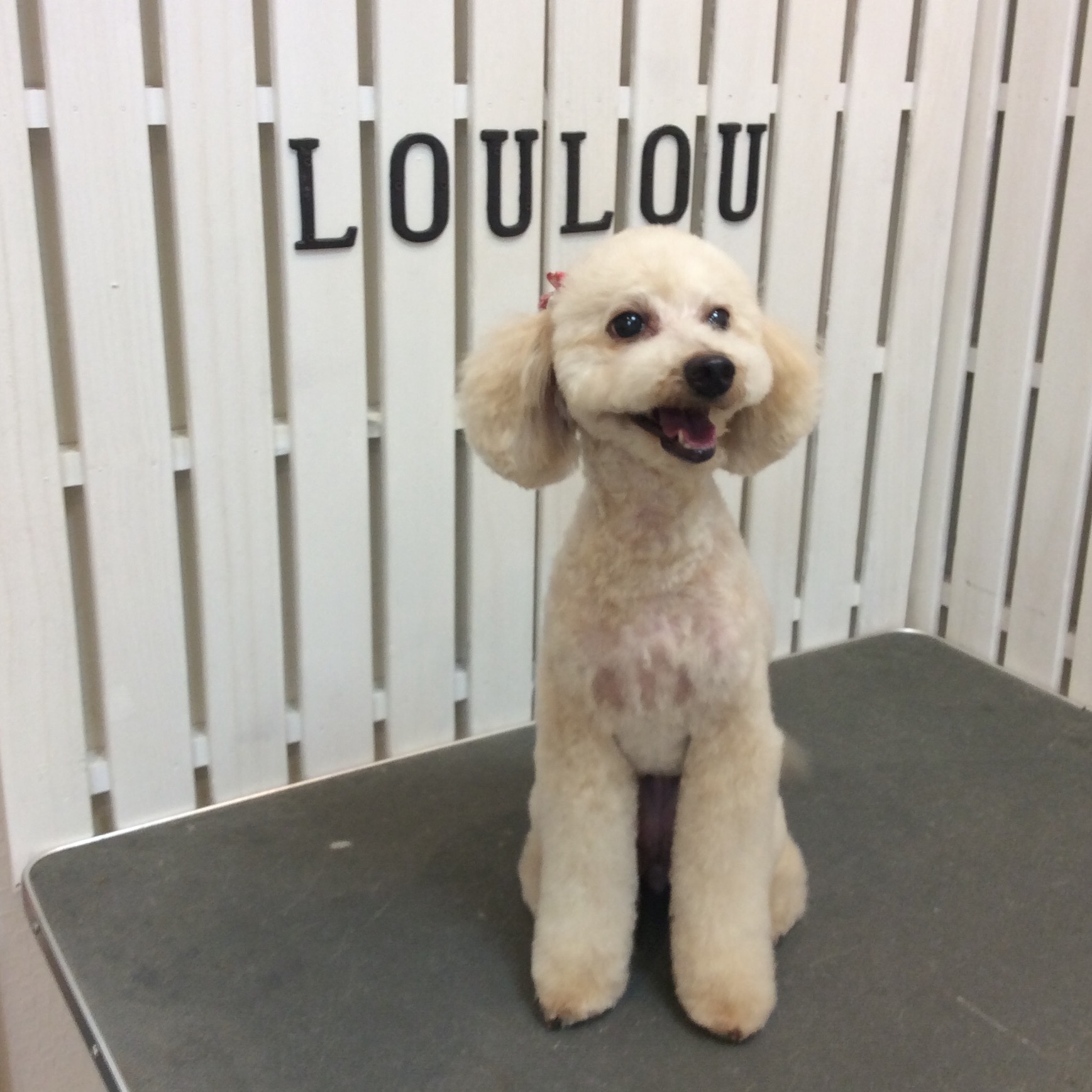 トイプードル アイネちゃん トリミング コメントする / トイプードル, トリミング / By ataso0902@gmail.com トイプードルのアイネちゃんがカットに来てくれました お顔まわりを短めにカットします(^o^) 今日はテディベア柄のリボンを付けて見ました❤️ アイネちゃん、ありがとうございました(^o^)