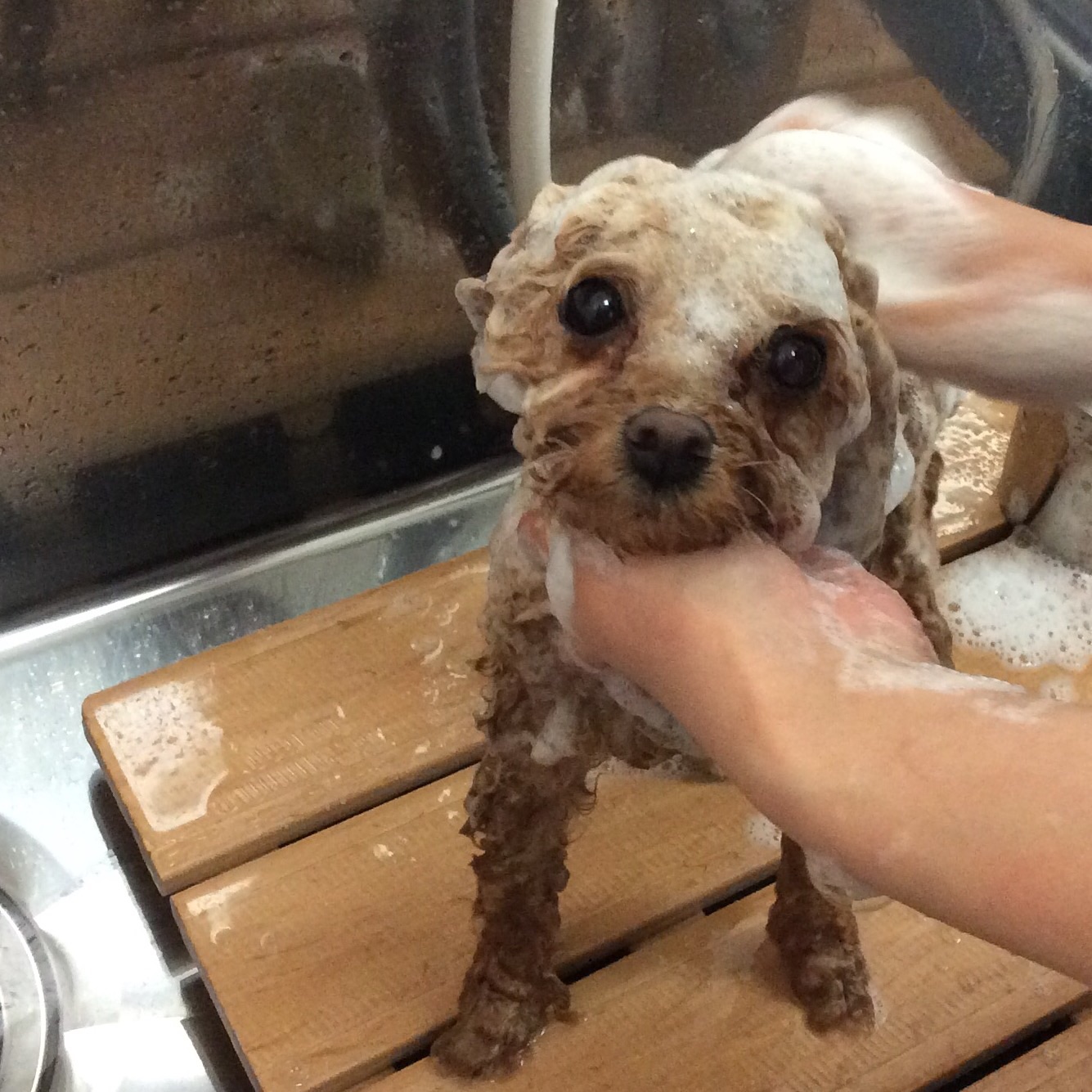 トイプードル コットンちゃん テディベアカット コメントする / トイプードル, トリミング, 未分類 / By ataso0902@gmail.com トイプードルのコットンちゃんがカットに来てくれました いつもウキウキでお店に来てくれるコットンちゃん❤️ お手入れ中もカメラ目線(^_−)−☆ シャンプー中も見つめてくれます(^o^) お耳のボリュームも、いい感じになってきました❤️ コットンちゃん、ありがとうございました(^o^)