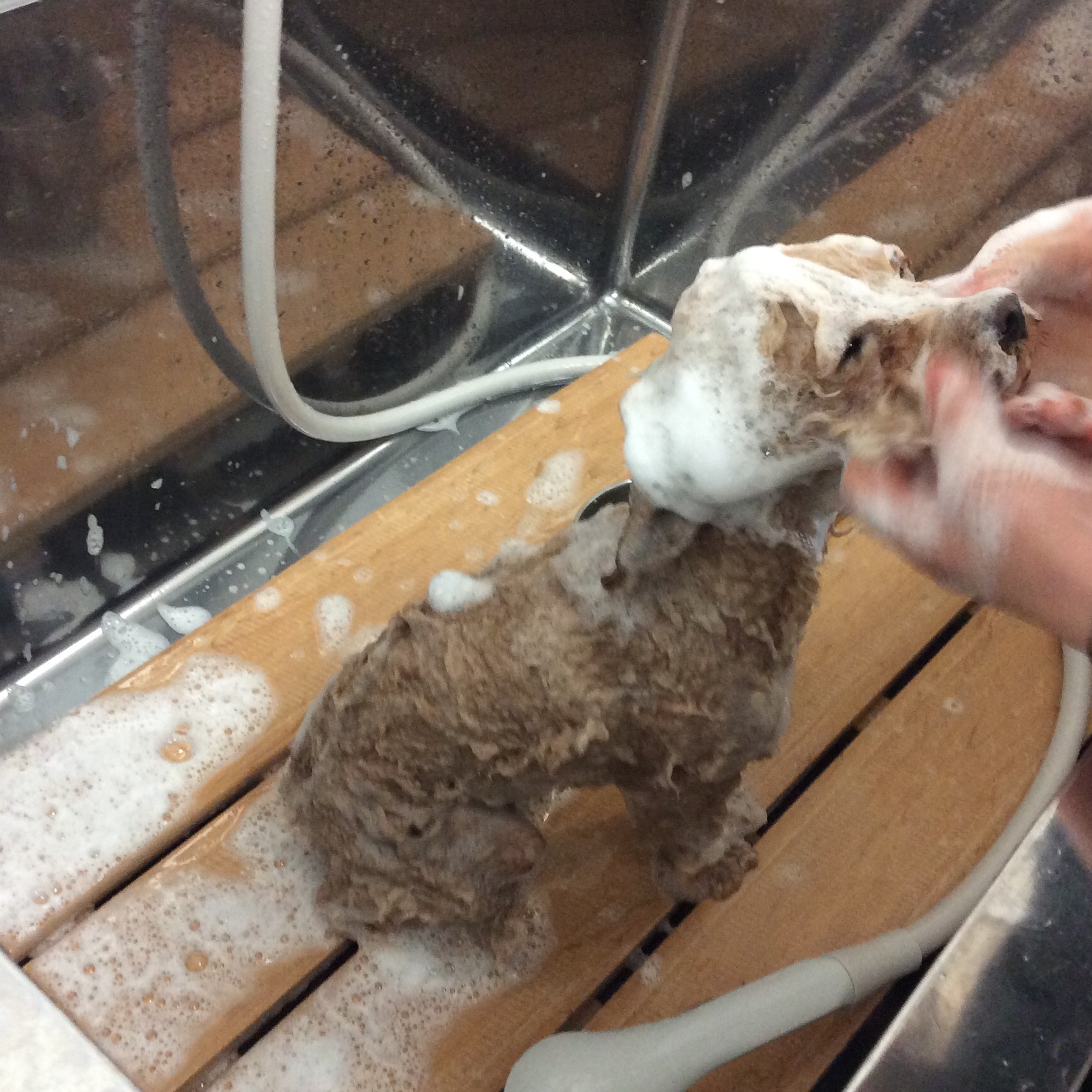 トイプードル コットンちゃん トリミング コメントする / トイプードル, トリミング / By ataso0902@gmail.com お散歩途中、道の遠くの方で私たちスタッフに気がついた時でも 熱烈歓迎してくれるコットンちゃん 今日はカットに来てくれました❤️ お店に入ってきても、熱烈歓迎❤️❤️は変わりません シャンプー&カット中は、時々ウトウトしちゃうほど 落ち着いてます(^o^) コットンちゃん、ありがとうございました お出かけ、楽しんで来てね(^o^)