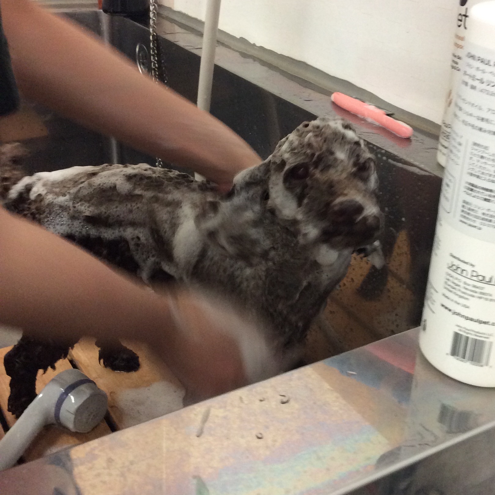 トイプードル シュシュちゃん トリミング コメントする / トリミング / By ataso0902@gmail.com トイプードルのシュシュちゃん 満面の笑みです(^o^) シュシュちゃんも最近、カットチェンジ中❤️ その仔の生活スタイルや毛質など 飼い主さんと一緒にカットを考えていく事は とても楽しいです(^o^) 甘えん坊さんだという事ですが お店では、カット中も待ち時間もとっても良い仔です❤️ シュシュちゃん、ありがとうございました(^o^)