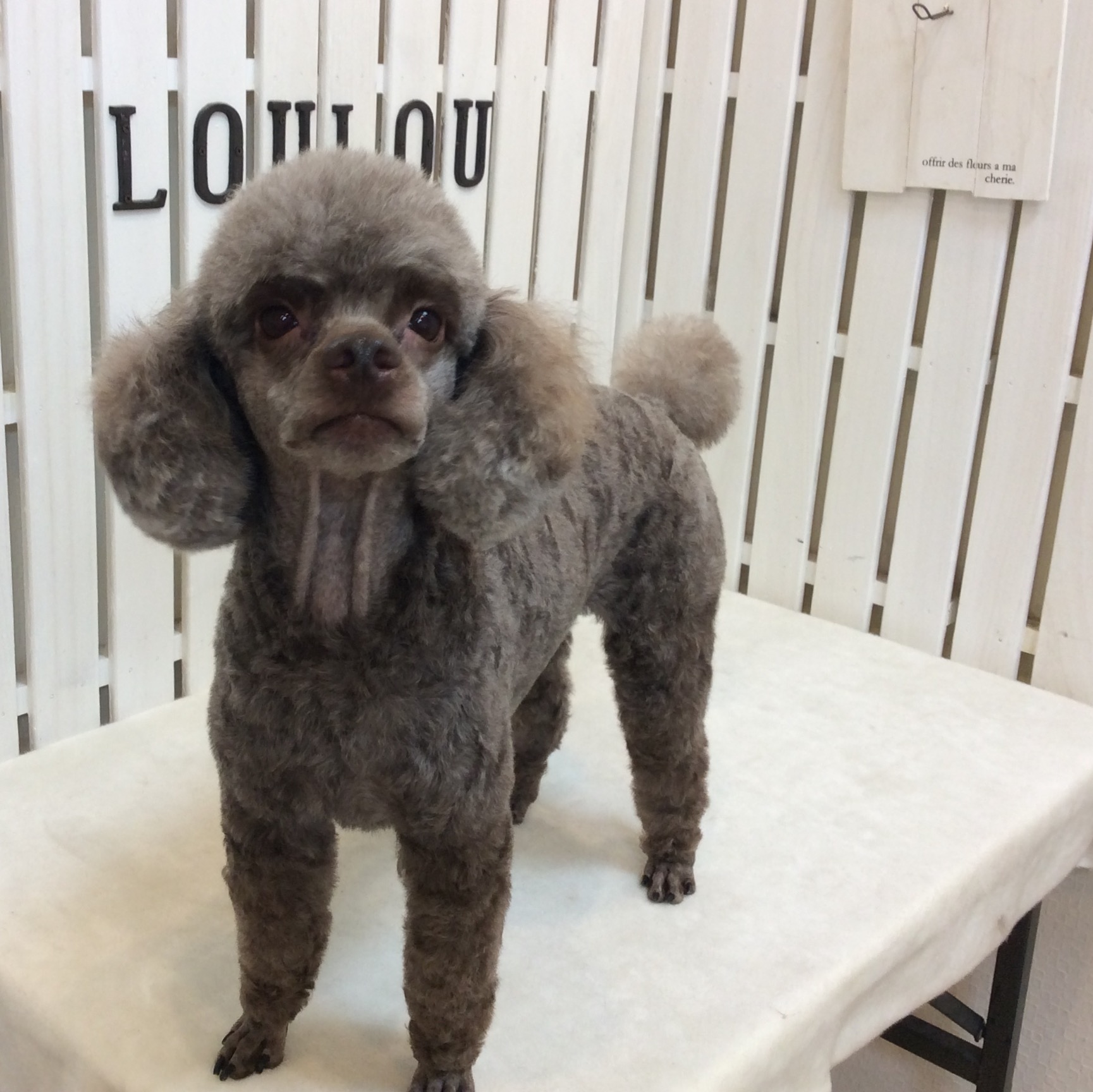 トイプードル ログちゃん トリミング コメントする / トイプードル, トリミング / By ataso0902@gmail.com トイプードルのログちゃん もうちょっと涼しくなったら、羊カットにしてみたいという事で 今回は、身体はあまり短くしない事になりました ログちゃん、ありがとうございました(*^o^*)