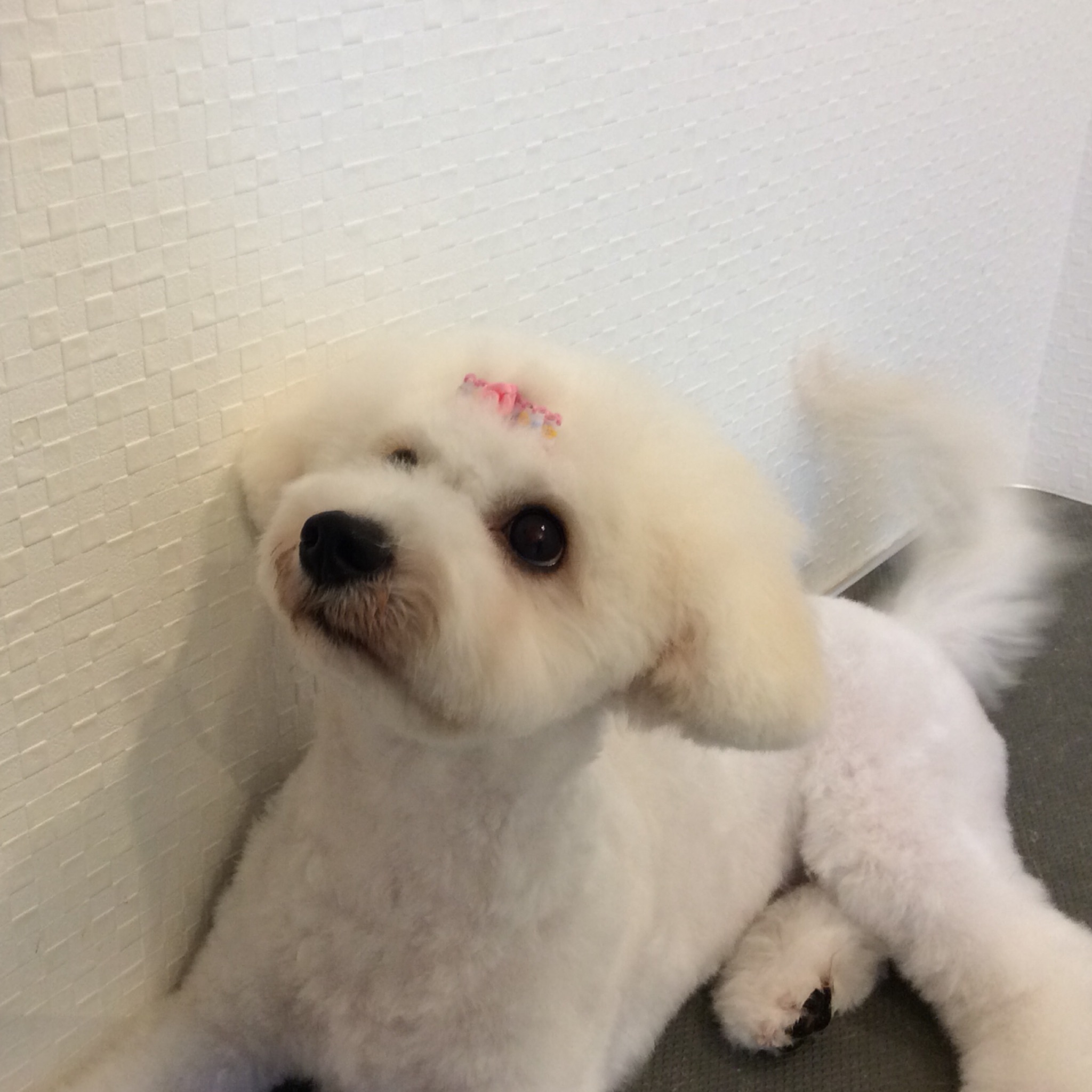 ビション はなちゃん カット コメントする / トリミング, 未分類 / By ataso0902@gmail.com まめに来てくれているビションフリーゼのはなちゃん^ ^ 少しずつ大きくなってビションっぽくなってきました! 今日は頭にリボンをつけておめかし❤️ ヘアークリップ1個150円でお付けできます⭐️ 頭を結んでる子や、毛の長めのわんちゃんにおすすめです(^∇^) クリップなのでお家での取り外しも楽チンでおすすめです♪( ´θ`)ノ