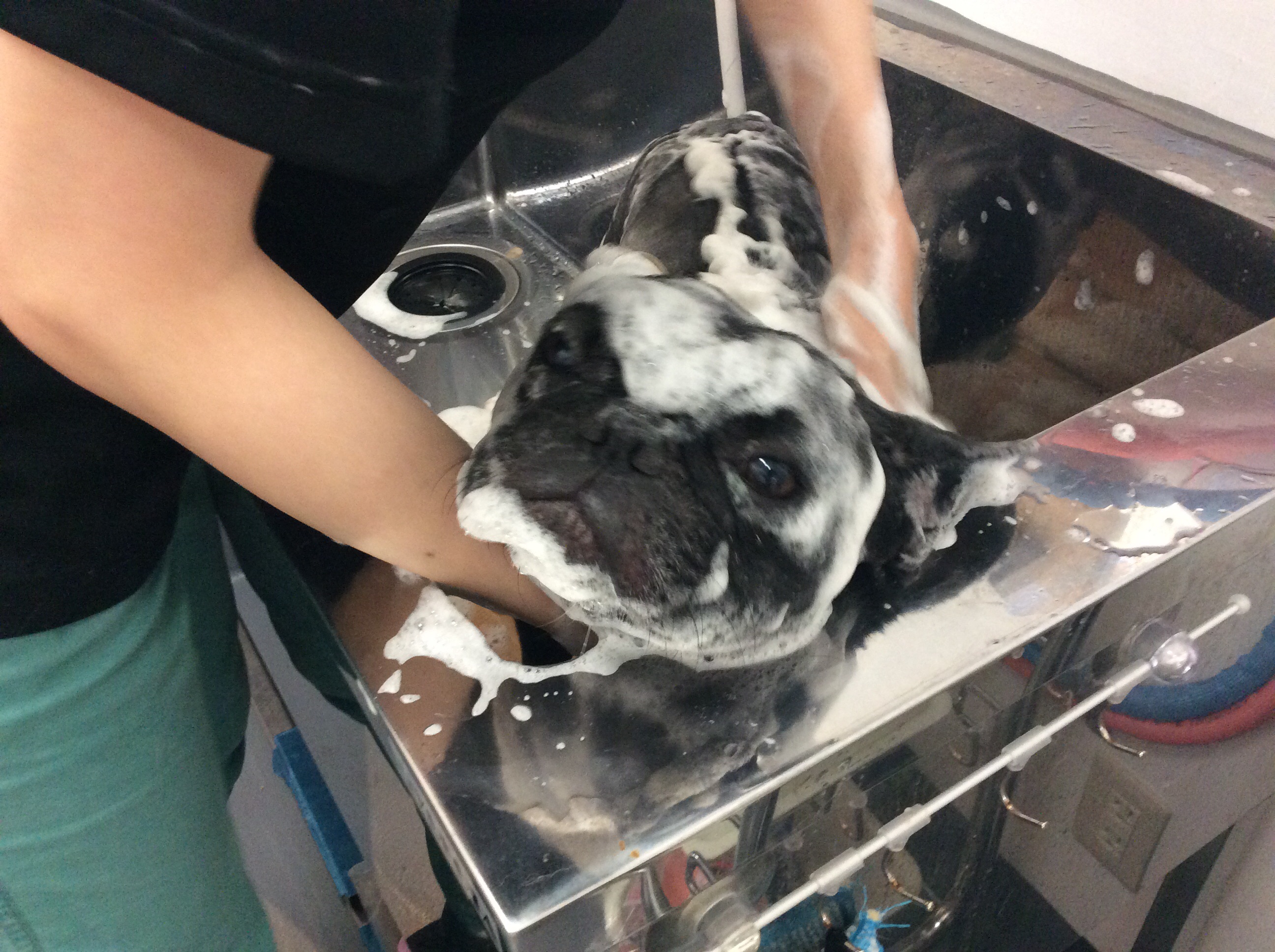 フレンチブルの豆ちゃん シャンプー コメントする / シャンプー / By ataso0902@gmail.com フレブルの豆ちゃんが久しぶりにシャンプーに来てくれました(^o^) シャンプー中もすごく気持ち良さそうです 終わった後はテンションMAXでお店の中を爆走していた豆ちゃんですが、お写真はばっちりカメラ目線(^_−)−☆ 豆ちゃんお疲れ様でした♪