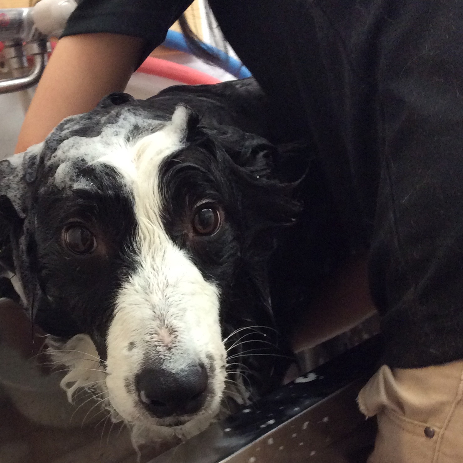 ボーダーコリーのチョコちゃん シャンプー コメントする / シャンプー / By ataso0902@gmail.com ボーダーコリーのチョコちゃん シャンプーが始まるまで、裏の小部屋で待機中です❤️ ちょっとシャイだけれど人が大好きなチョコちゃん お手入れも良い子で頑張ってます(^o^) お尻の毛を少し切ってスッキリしました❤️ チョコちゃん、ありがとうございました❤️