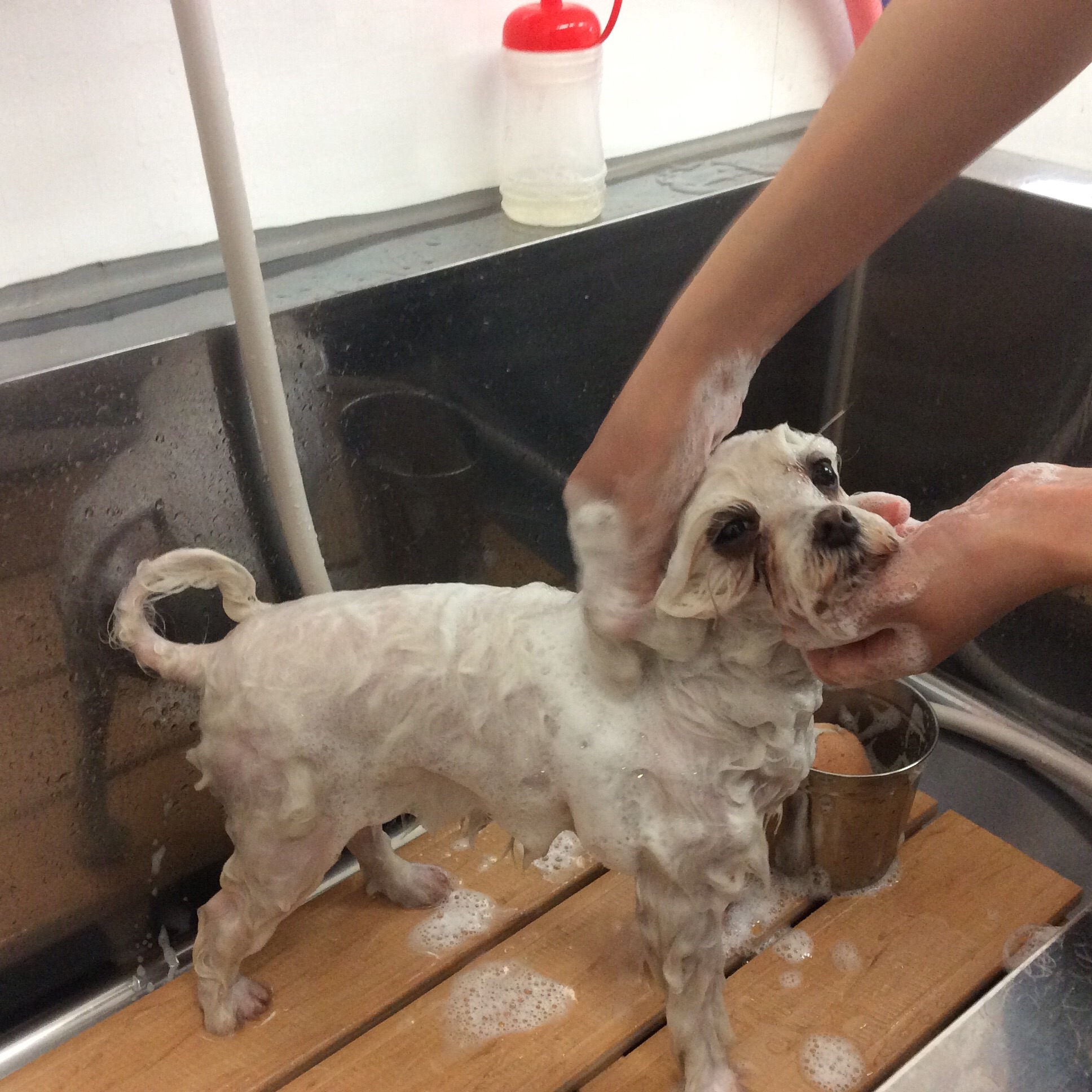 マルチーズのベリーちゃん トリミング コメントする / トリミング / By ataso0902@gmail.com マルチーズのベリーちゃんがトリミングに来てくれました☆ お店に入ってくる時には笑顔だったのですが お手入れが始まると若干テンションがダウンしてしまったご様子( ^ω^ ) でもとっても良い子なベリーちゃんです❤️ シャンプーも気持ち良さそうにリラックス〜♪ お写真もお利口さんに撮らせてくれました☆ ベリーちゃんありがとうございました(*^o^*)