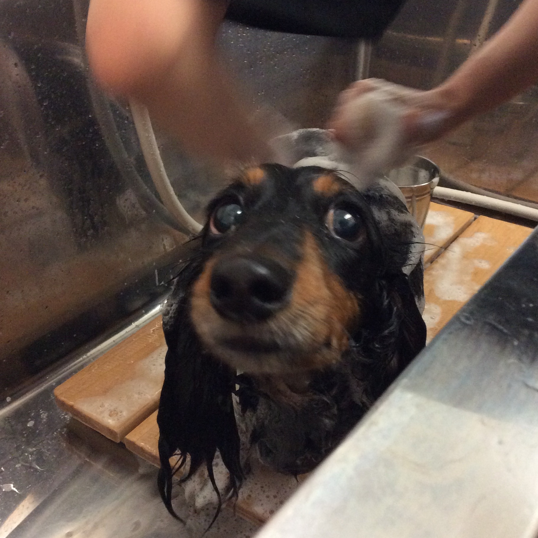 ミニチュアダックスのアポロちゃん サマーカット コメントする / ダックス, トリミング / By ataso0902@gmail.com 初めてお店に来てくれた ミニチュアダックスのアポロちゃん かなり緊張中です(^o^) 初めての場所だし 何されちゃうんだろうってドキドキして当たり前ですよね 夏に向けて全身短くサマーカット☀️ スッキリしました❤️ アポロちゃん、ありがとうございました(*^o^*)