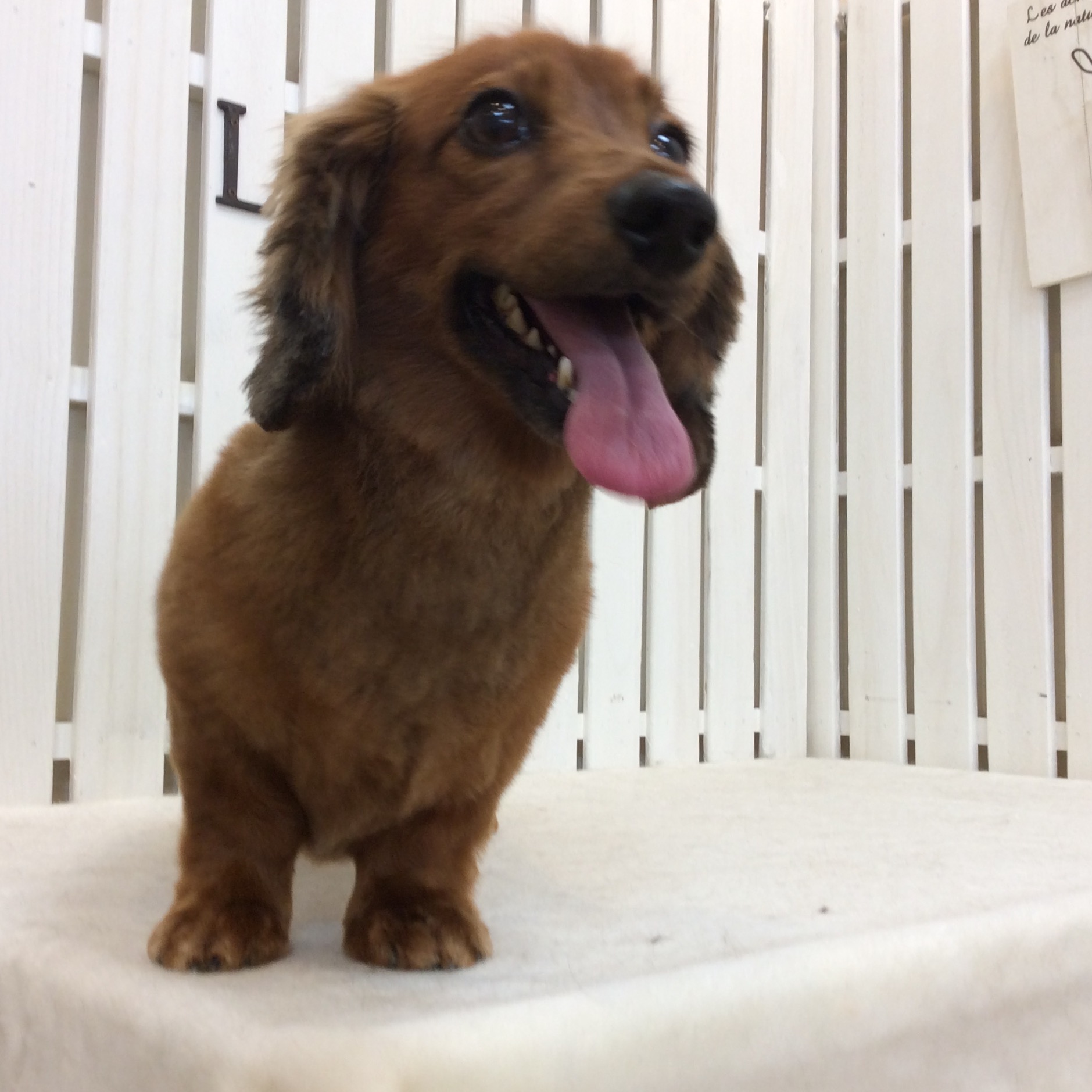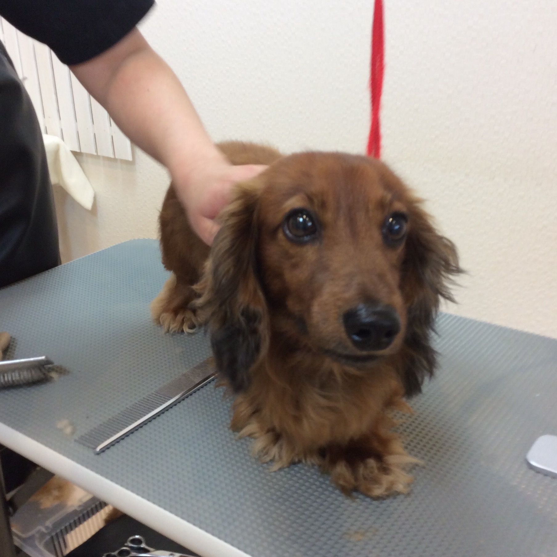 ミニチュアダックス ちゃくらちゃん トリミング コメントする / ダックス, トリミング / By ataso0902@gmail.com 初めてお店に来てくれた ミニチュアダックスのちゃくらちゃん 最初はかなり緊張(;_;)モード シャンプーも良い仔ですが、何かをじっと凝視中(笑) ママのお迎えに気がつくと ホッとしたのか 少しずつ緊張も解けてきました❤️ ちゃくらちゃん、ありがとうございました(*^o^*)