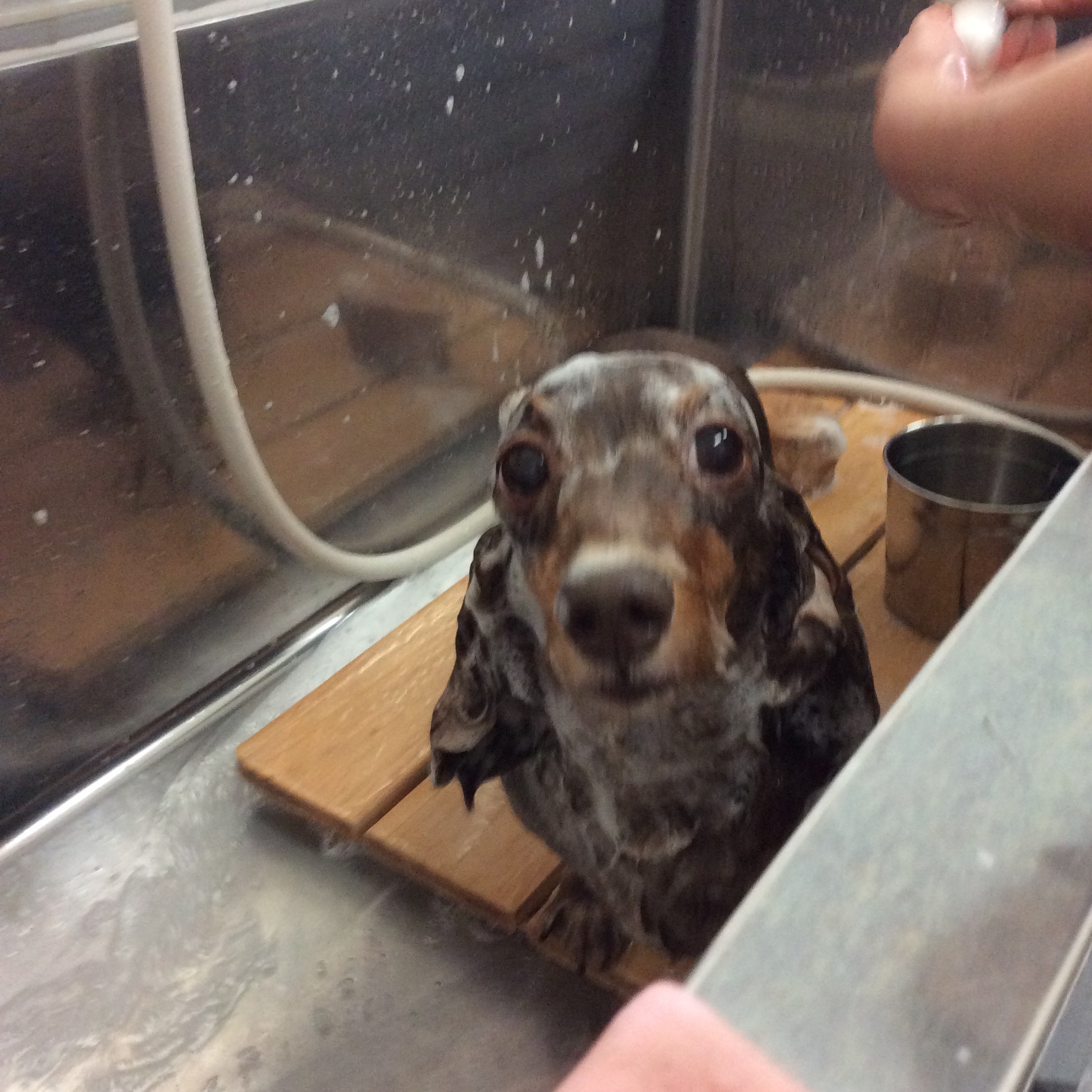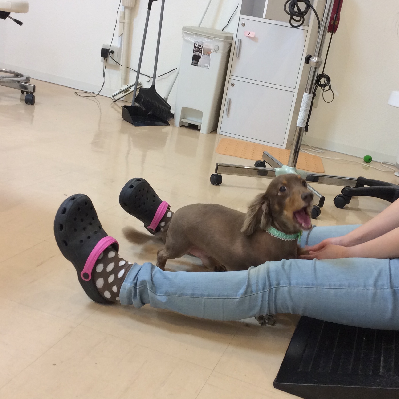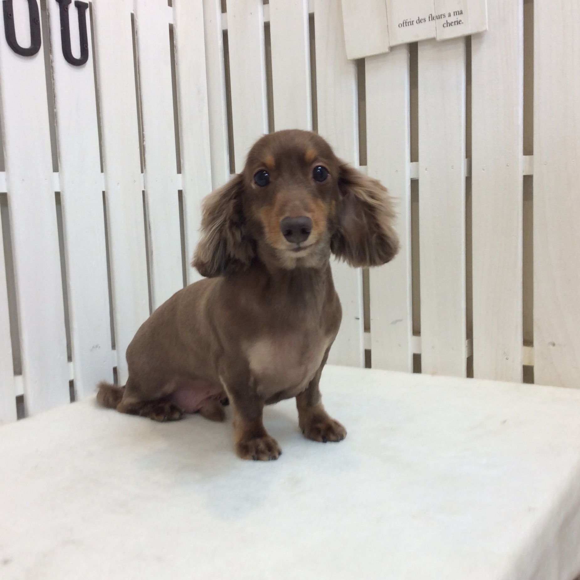 ミニチュアダックス チョコちゃん トリミング コメントする / ダックス, トリミング / By ataso0902@gmail.com 初めてお店に来てくれた ミニチュアダックスのチョコちゃん お鼻をペロン❤️ ちょっと緊張中かな? 少しずつ落ち着いてきたチョコちゃん カットの後はお店の中でのびのび〜❤️ トリマーと遊んでいました 記念撮影も一回でOK(^_−)−☆ チョコちゃん、ありがとうございました❤️