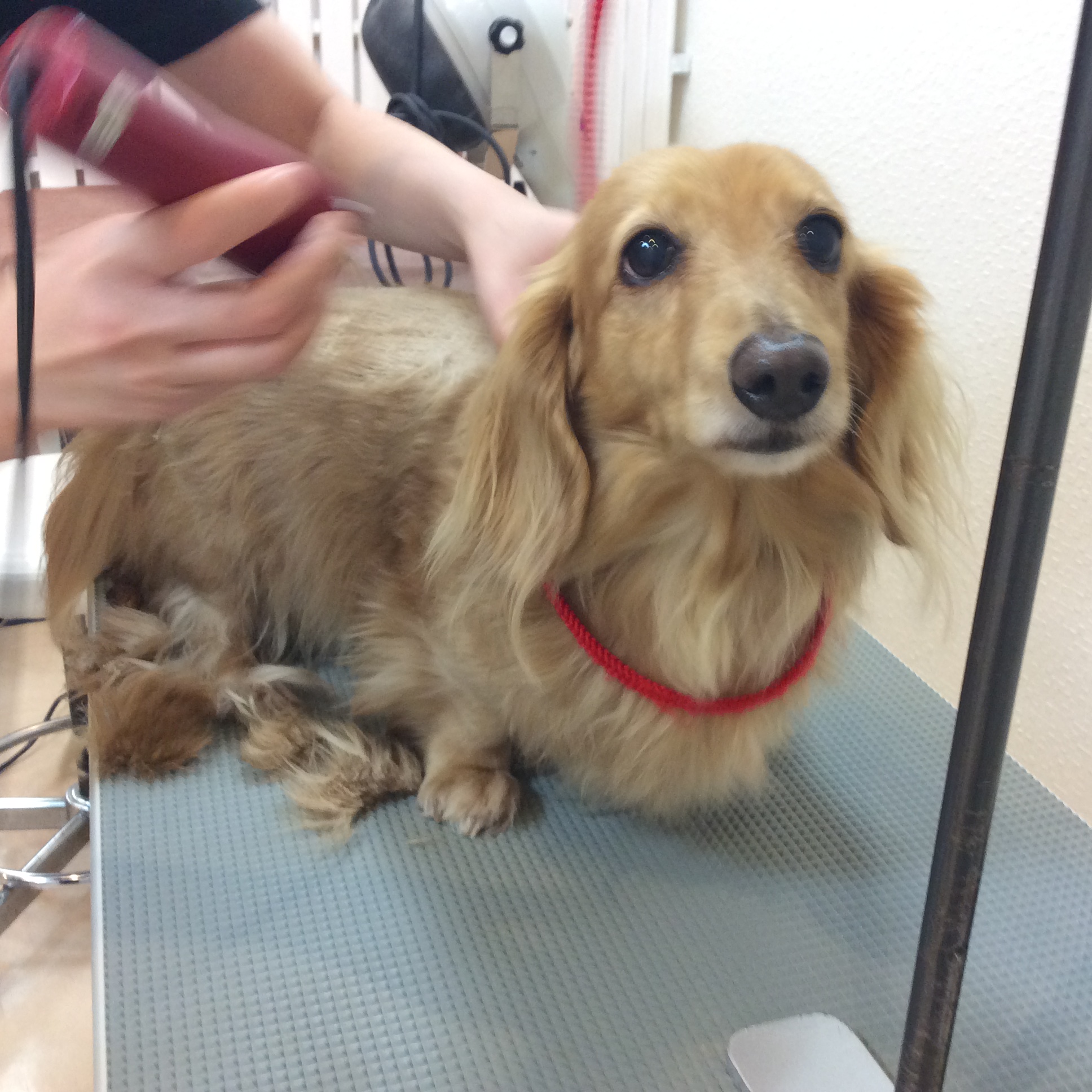 ミニチュアダックス トトロちゃん トリミング コメントする / ダックス, トリミング / By ataso0902@gmail.com 初めてお店に来てくれた ミニチュアダックスのトトロちゃん 今日はカットコースでご来店💓 初めての場所もあまり緊張しないタイプのトトロちゃん シャンプーは、とっても気持ち良さそうでした✨ トトロちゃん、ありがとうございました(*^o^*)