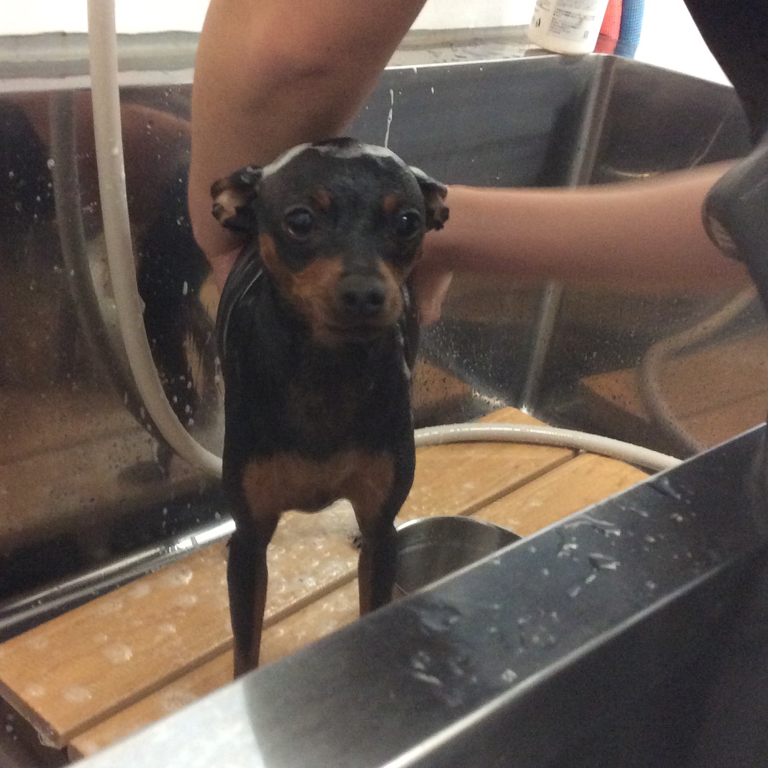 ミニチュアピンシャーのルビーちゃん シャンプー コメントする / シャンプー / By ataso0902@gmail.com ミニチュアピンシャーのルビーちゃん 今日はシャンプーに来てくれました❤️ 一緒に来てくれたダイヤちゃんのカットが終わるまで いい仔で待っていてくれたルビーちゃん ありがとうございました(^o^)