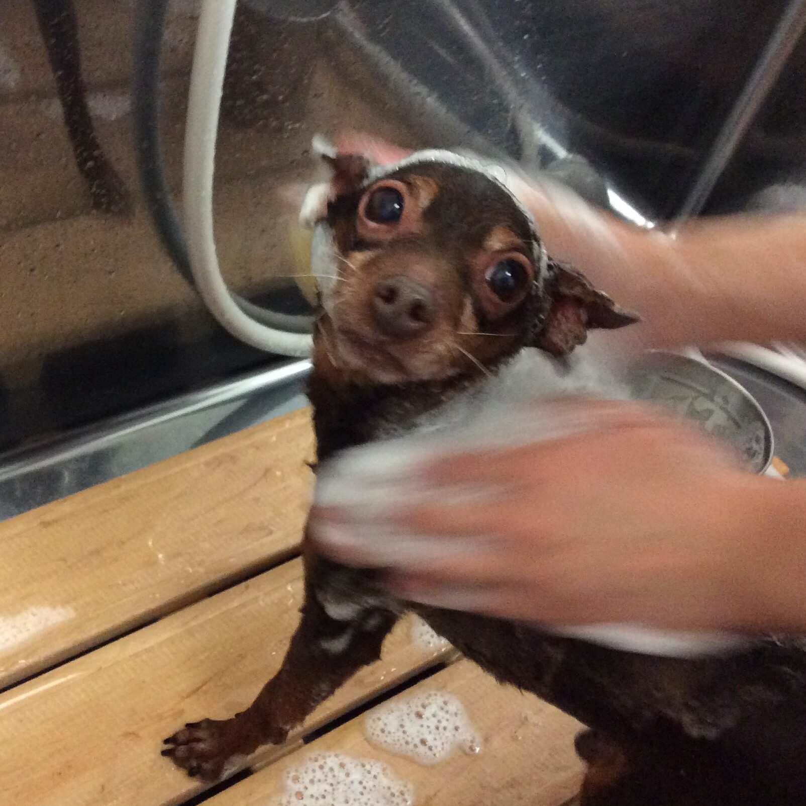 ミニピンのチョコラちゃん シャンプー コメントする / シャンプー, トリミング / By ataso0902@gmail.com 初めてお店に来てくれたミニピンのチョコラちゃん 苦手かもっと言っていた爪切りも 笑顔でクリア❤️ 今日は雨ですが、乾燥の季節なので、モイスチャーシャンプーに してみました❤️ チョコラちゃん、ありがとうございました(^o^)
