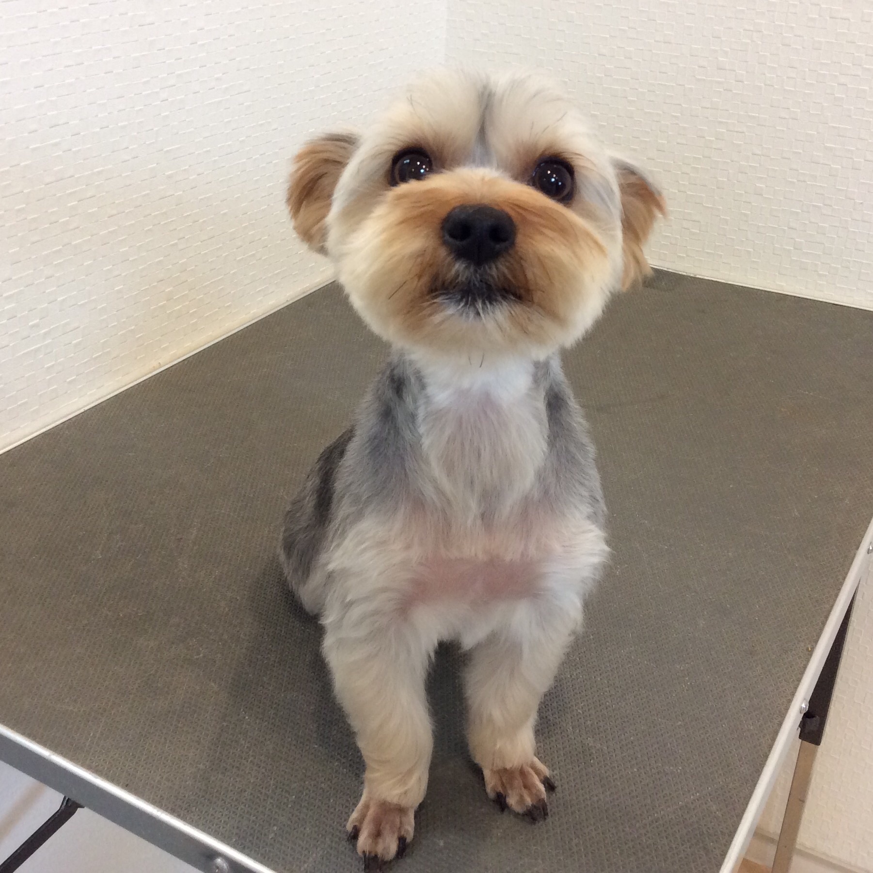 ヨーキー ツブちゃん カット コメントする / トリミング, ヨーキー / By ataso0902@gmail.com 元気一杯ヨーキーのツブちゃん トリミング中も、尻尾フリフリが止まりません(^o^) シャンプー中も目が合うと、尻尾フリフリ〜❤️ お顔も耳も丸く子熊ちゃんカット♩ ツブちゃん、ありがとうございました❤️