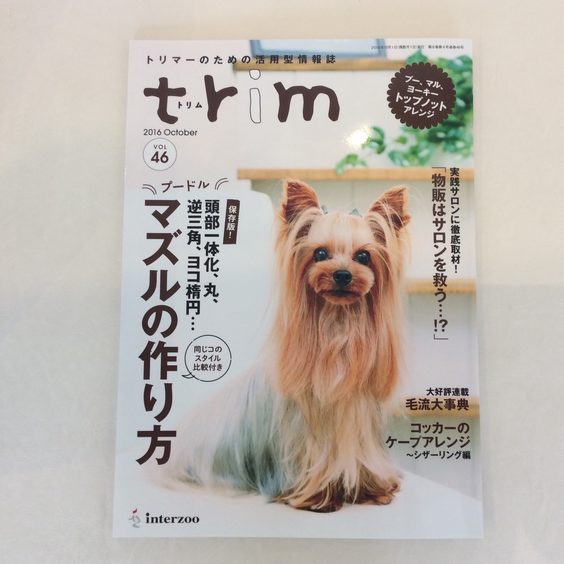 trim 発売されました♩ コメントする / NEWS!, イベント, トリミング, メディア掲載 / By ataso0902@gmail.com 先日撮影していただいた「trim」が発売になりました! 「トップノット6style」の中で お店にカットを2style紹介していただいています❤️ そして、表紙も❣ 普段のお転婆を封印した、完璧なポージング(*^o^*) キララちゃん、本当に可愛いです❤️ 撮影慣れしていない私たち、かなりパニクり バタバタしてしまいましたが 協力してくださったキララちゃん、ピン子ちゃん ありがとうございました そしてtrimの皆様、ありがとうございました♩